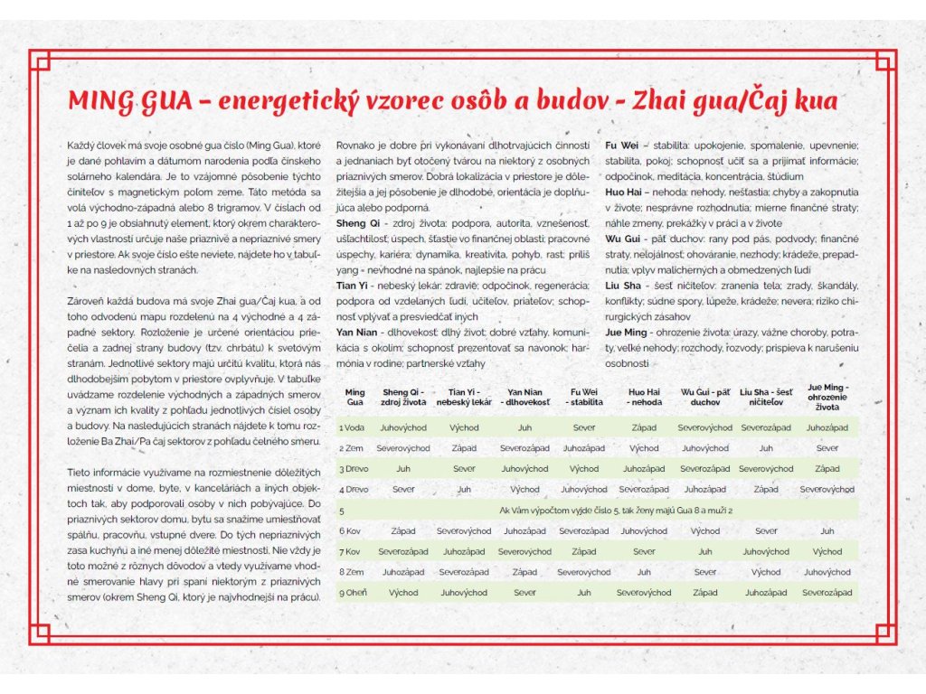 - Osobné životné číslo (Ming Gua) a jeho priaznivé a nepriaznivé smery
