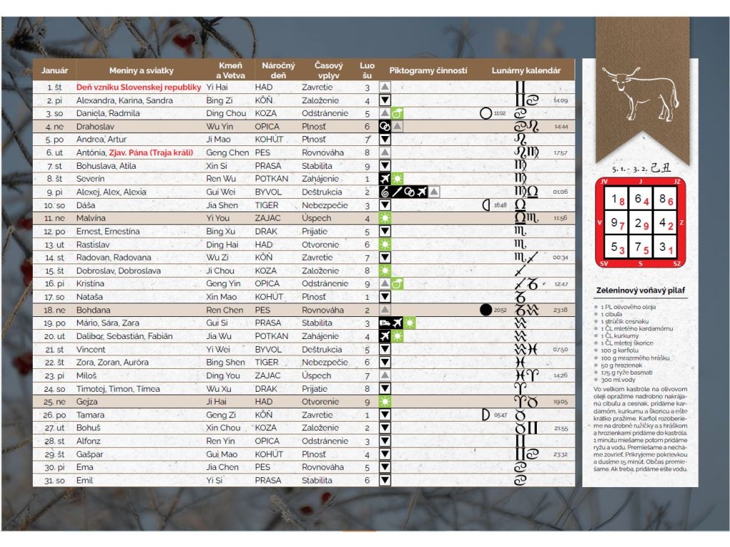 Kalendár almanach feng šuej 2026 je určený ľuďom s aktívnym prístupom k životu, pre poradcov alebo fanúšikov feng šuej, ako aj terapeutov praktizujúcich klasickú čínsku medicínu.
